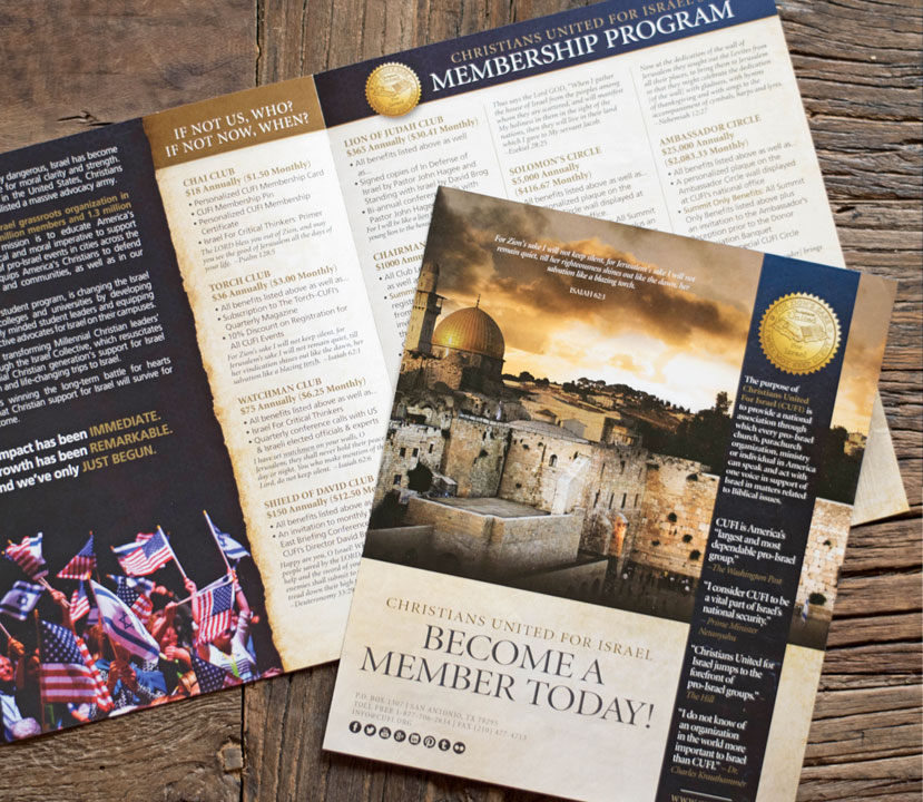 Rudkin Productions has been with CUFI since inception. Beginning back in 2006 with the initial logo, we have become a marketing extension to this client. From the initial branding, website design and daily maintenance, through collateral materials to national media buying, to executing and planning large events, we walk alongside the CUFI team to reach, inform and interact with their 7 million active members and provide necessary marketing support to all their US regional directors, national staff, diversified coordinators and all their affiliate programs.