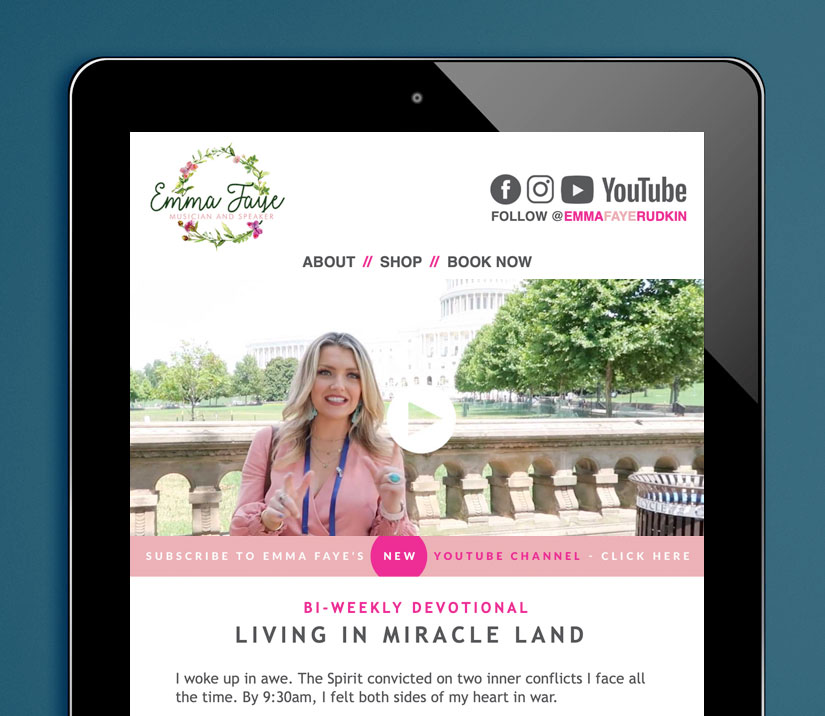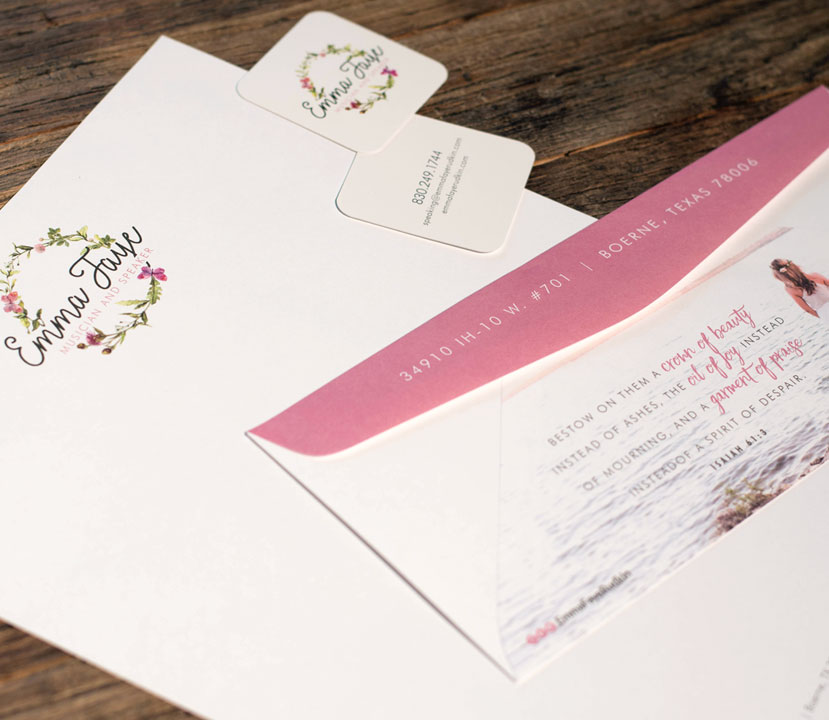 When Emma came to us to help brand herself, we couldn’t be more excited about the opportunity. Our team interviewed Emma to discover what she liked and the image she was trying to convey, all while staying true to her personality and mission. Emma has a bohemian spirit, an eye for pretty and all things girlie and passion for Jesus Christ. We were able to take all these loves and create something that truly spoke to her. Everything from the style of photography and website design to the stationery and media kit, is peppered with Emma’s personality.