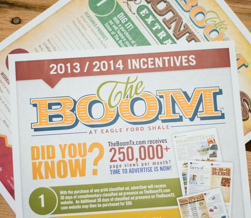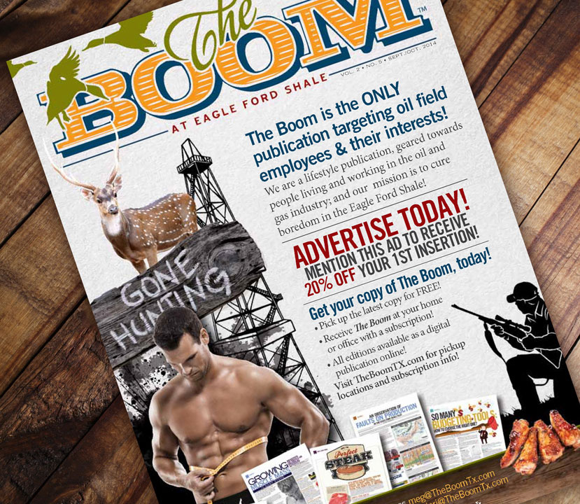 The Boom was a Boerne-based newspaper that was distributed throughout Texas, but specifically in the Eagle Ford Shale area. Articles, recipes, tips and features peppered the publication. It was an entertaining and fun read to get through the day.