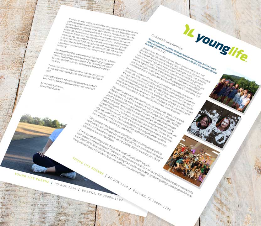 Young Life is an international Christian organization that facilitates positive outreach to kids on their own turf, “where they are, as they are.” Adult leaders host frequent “club” meetings for middle and high school students that provide an uplifting atmosphere of music, games and inspiring conversation. Summer camps and specialty ministries such as a teen mother outreach and a program for young people with disabilities round out the organization’s offerings.
